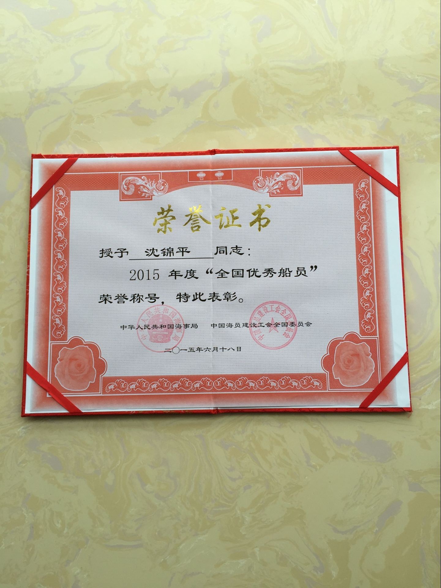 2015年6月沈錦平被國家海事局中國海員建設(shè)工會授