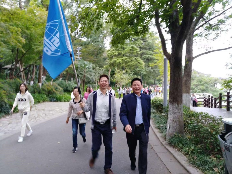 清晨玄武湖畔,微風(fēng)送來陣陣桂香,參與活動的職工們個(gè)個(gè)心情愉悅、精神飽滿。8點(diǎn)30分,由總經(jīng)理李斌宣布活動正式開始。職工們浩浩蕩蕩地從玄武門出發(fā),三面旗幟迎風(fēng)飄揚(yáng),在清晨熙熙攘攘的人群中鮮艷異常。