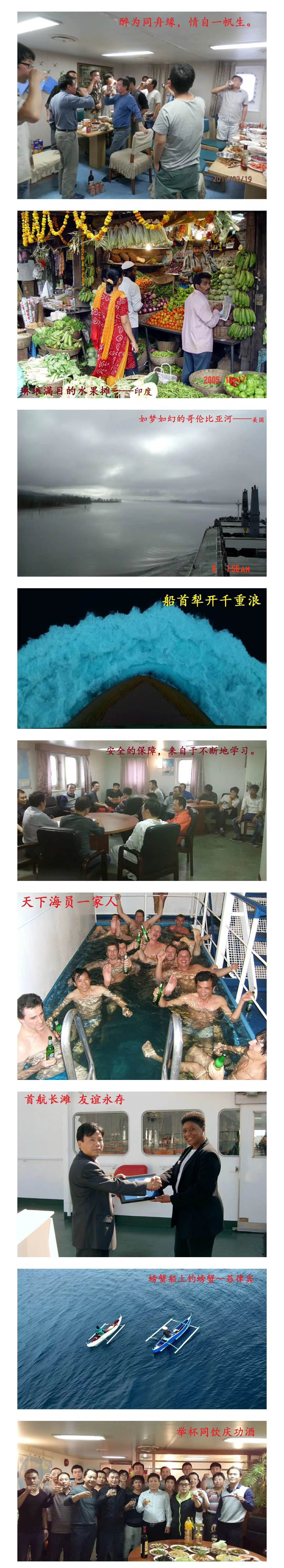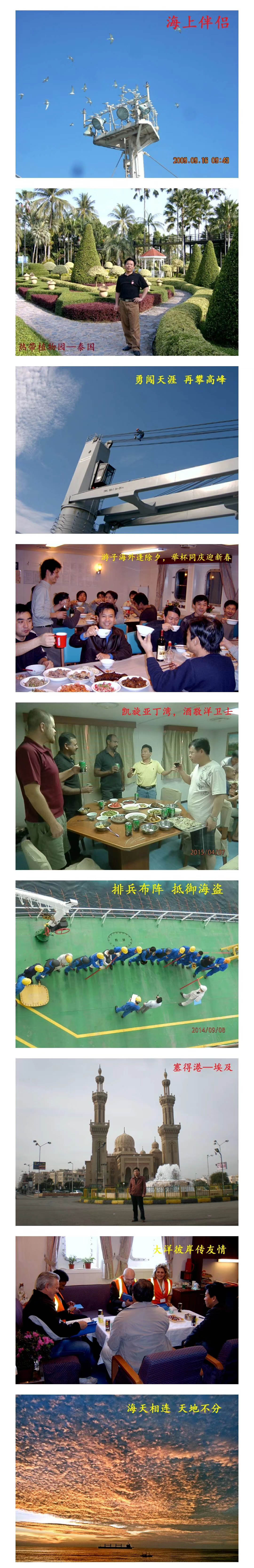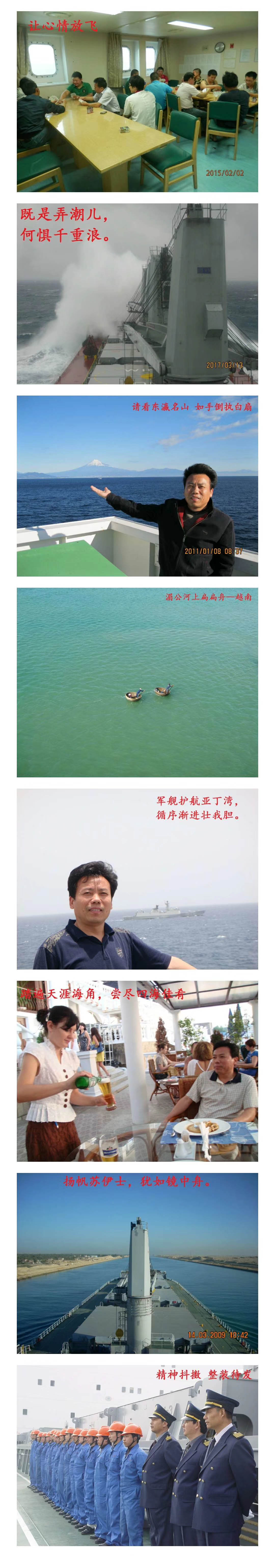 再過數(shù)日,三十八年的航海生涯就要畫上句號(hào)了?;叵肫疬@一路走來的風(fēng)雨歷程,真是感慨萬千。想當(dāng)初一名懵懂的毛頭小伙,滿懷著激情,充滿了希望,興高采烈地踏上了萬噸巨輪,從一名實(shí)習(xí)生、二級(jí)水手、一級(jí)水手、駕助、三副、二副、大副,直到1998年擔(dān)任遠(yuǎn)洋船長(zhǎng),將自己的青春,最燦爛最美好的年華灑向了茫茫大海。這些年,我們駕巨輪、乘長(zhǎng)風(fēng)、破巨浪,遨游滄海。世界上最著名的三大運(yùn)河:蘇伊士、巴拿馬、基爾,都留下了我們難忘的足印,最有名的大風(fēng)浪區(qū):好望角、比斯凱灣、百慕大魔鬼三角區(qū),都留下了我們豪邁的吼聲,世界上各個(gè)角落,也留下了我們美好的回憶。三十八年航海生涯,飽經(jīng)風(fēng)霜,艱辛曲折,與天斗,與海斗,航經(jīng)索馬里海域等還要與人斗。但是我一生無悔,因?yàn)檫@一路上我已經(jīng)盡心盡興了,在我一生中擁有了一個(gè)完美的旅程。在此我要特別感謝曾經(jīng)與我同舟共濟(jì)的船員兄弟們,是你們給了我戰(zhàn)狂風(fēng),斗惡浪的勇氣和力量,這段兄弟般的友情我會(huì)永遠(yuǎn)銘記在心中。