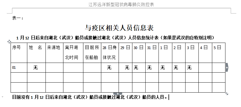 江蘇遠(yuǎn)洋通過(guò)微信群、郵件等方式及時(shí)發(fā)布相關(guān)工作要求、督促工作落實(shí)。執(zhí)行公司疫情防控工作日?qǐng)?bào)告制度,每日統(tǒng)計(jì)匯總?cè)藛T動(dòng)態(tài),切實(shí)做到守土有責(zé)、守土負(fù)責(zé)、守土盡責(zé)。