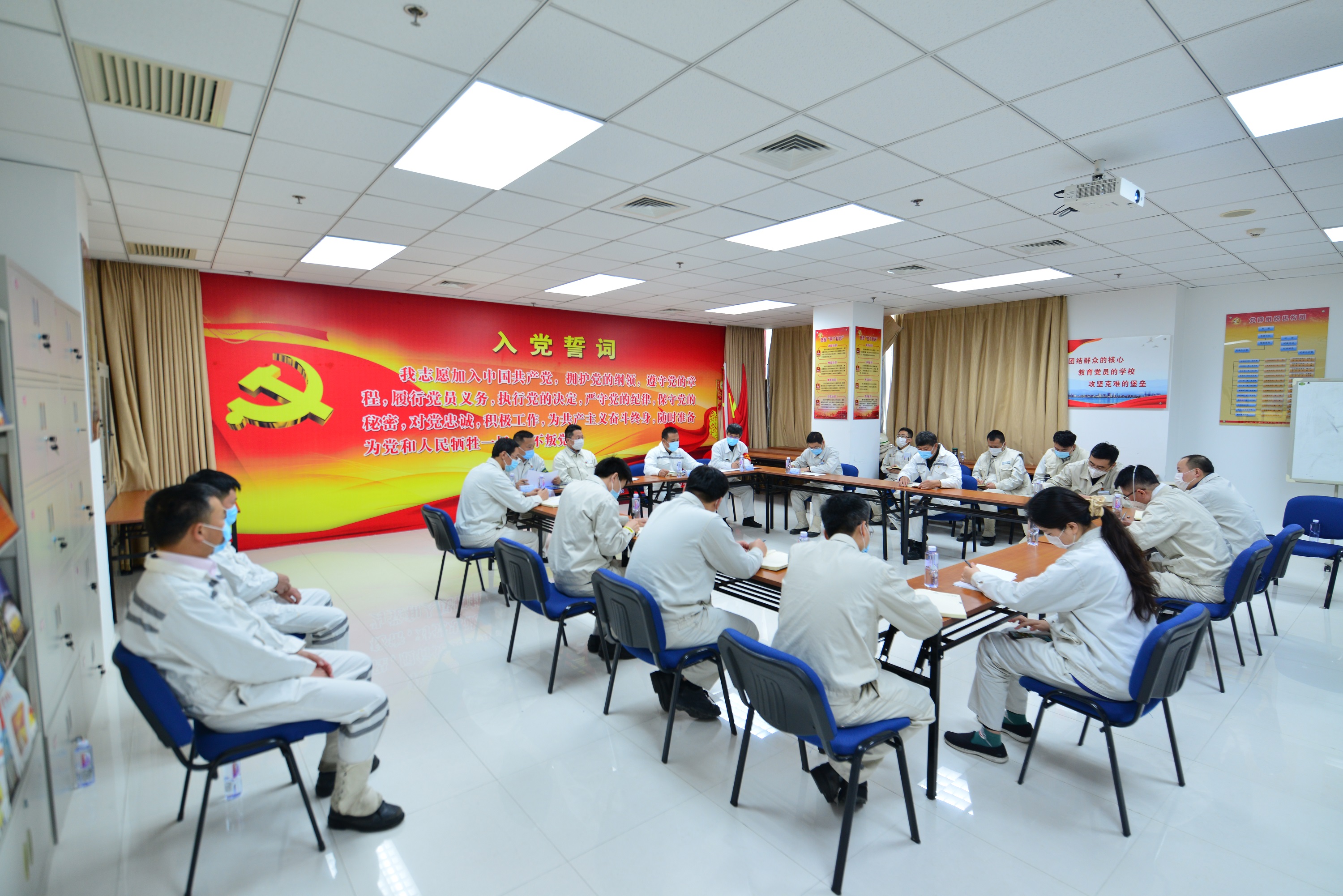 項目黨支部支部書記周忠平主持會議,并從組織建設(shè)、組織生活、主題教育、服務(wù)船東等方面作項目黨支部總結(jié)匯報。