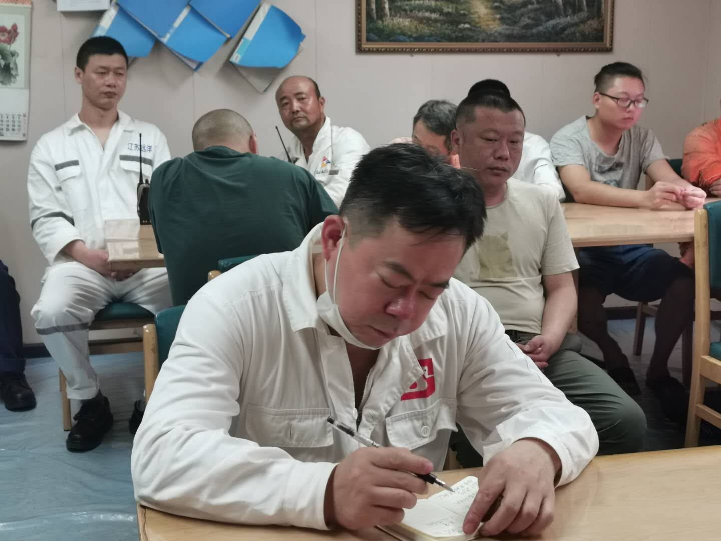 本次學(xué)習(xí)還特別視頻連線了公司黨委書(shū)記、董事長(zhǎng)晁陽(yáng)。晁書(shū)記親切問(wèn)候了全體船員并肯定大家的努力與良好的精神面貌;提醒大家把工作重點(diǎn)放在“外防輸入,內(nèi)防反彈”上,進(jìn)一步加強(qiáng)遠(yuǎn)洋船舶疫情防控工作,做到疫情防控力度不減、勁頭不松;希望大家在特殊時(shí)期要同心同德,積極構(gòu)建船舶安全生產(chǎn)、疫情防控、班組建設(shè)三位一體格局。最后,晁書(shū)記祝愿全體船員工作順利。