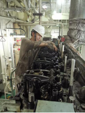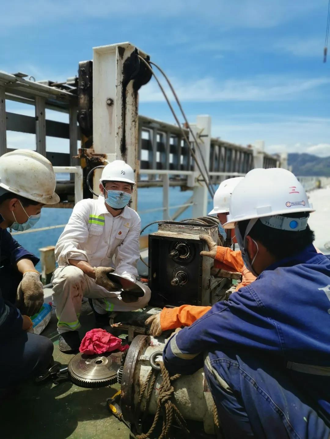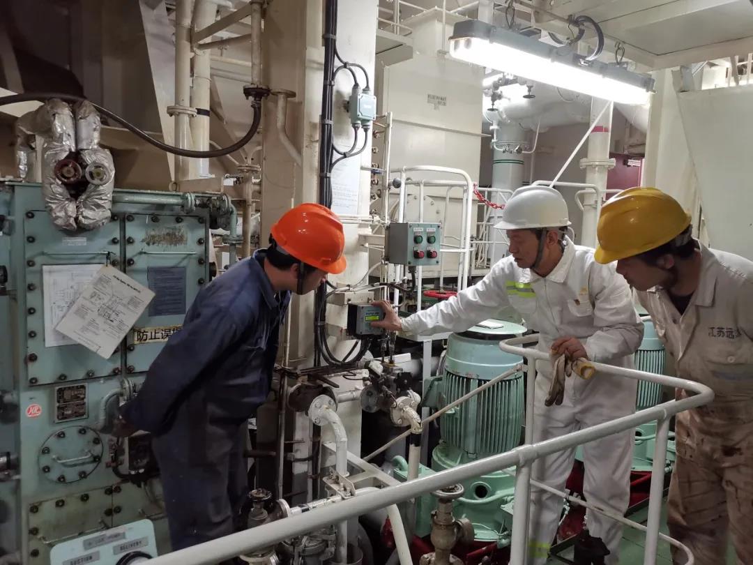 他是設備搶修的排頭兵。作為全船的輪機長,尹圣國本著遇到故障“立即解決,絕不拖延”的精神,總是身先士卒、親力親為,戰(zhàn)斗在搶修搶險的第一線。“我是船舶輪機長,關鍵時候我不上,誰上?”2019年1月,尹圣國任“江遠錦州”輪機長期間,船舶在菲律賓錨地裝貨時NO.2號克令吊吊臂頂頭吊貨滑車軸承發(fā)生損壞。更換這樣的軸承所需的工程量大,持續(xù)時間長,還需要進行高空作業(yè),危險性大、難度極高。尹圣國展現(xiàn)出高度的責任心和使命感,帶領輪機部和甲板部船員進行搶修工作,雖然已年過五旬,依舊毫無怨言,親自爬到十多米高的吊臂頭上進行吊貨滑車的拆裝和軸承的更換,連續(xù)工作十多個小時,連午飯、晚飯也顧不得吃,最終使克令吊恢復正常使用,為公司避免了租金損失。